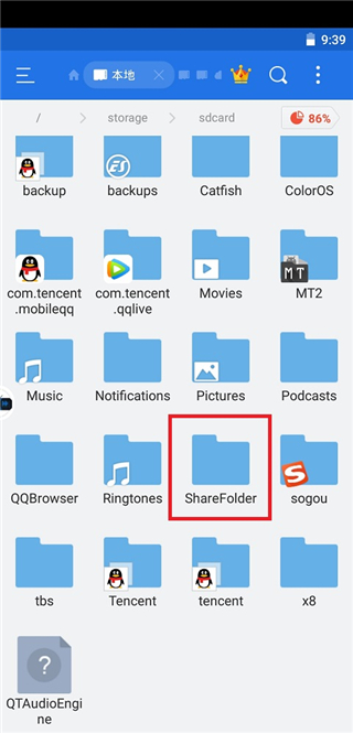 完整路径:/sdcard/x8zs.sanbox/sharefolder