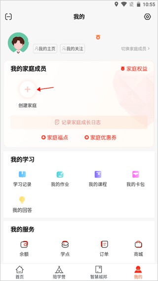 进入“我的”界面,点击“组建家庭”按钮,再点击“立即创建”即可完成家庭创建。