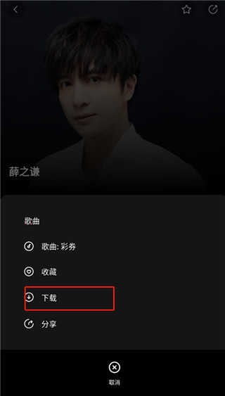 4、然后我们点击歌曲右边的三个点,我们可以收藏、下载或是分享该歌曲,我们点击下载;