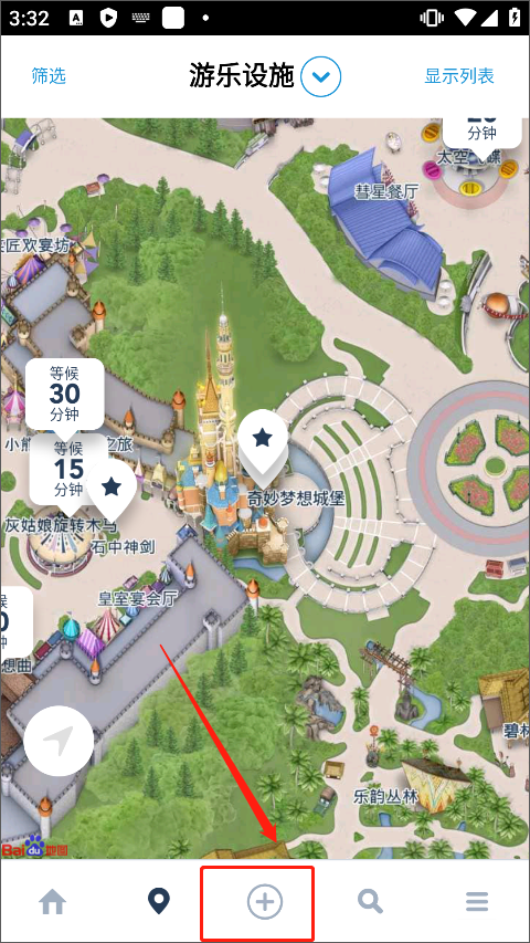 4、浏览乐园地图,定位您附近的景点、餐厅或商店等。