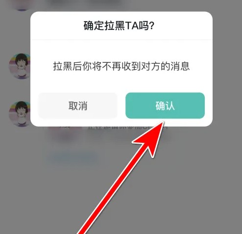 第四步:点击【确认】选项,即可拉黑聊天对象。
