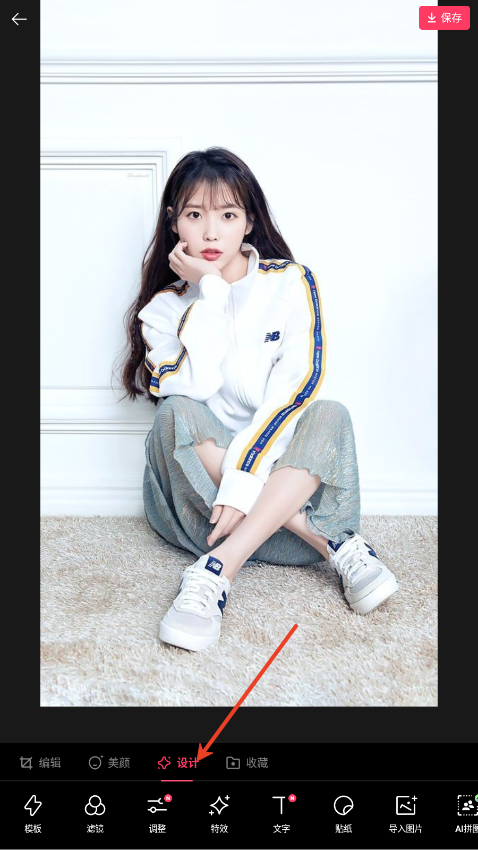 2、在“设计”界面,可选择多种滤镜样式,或者特效等来优化照片。