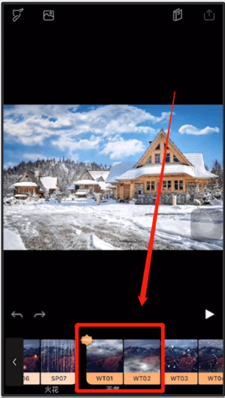 3、向左滑动至“天气”分类,选择第一个或第二个烟雾效果。添加后,照片上方将呈现缭绕烟雾,还可通过上方进度条调节烟雾浓度