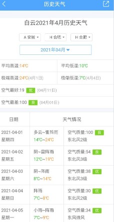 3、打开“历史天气”页面后,即可查看到当地的历史天气。