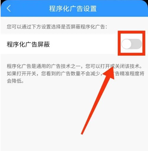 5、点击【程序化广告屏蔽】右侧的开关。