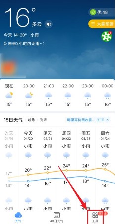1、打开2345天气王APP,点击首页面右下方的【工具】。