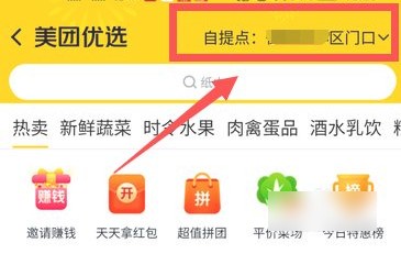 1、进入美团优选,点击“自提点”。