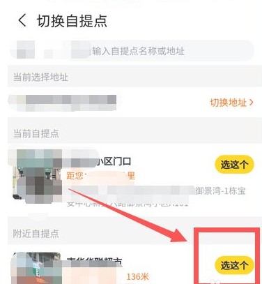 2、切换自提点界面,点击“选这个”。