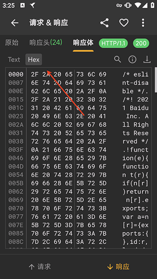 10、点击目标数据即可查看响应体内容,并可自由切换文本、Hex等多种视图模式,深入分析数据结构。