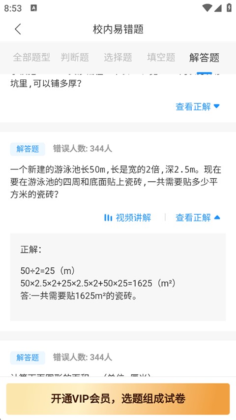 3、在校内易错题页面中,系统按知识点分类展示高频易错题,每道题均配有详细解析,帮助学生精准查漏补缺。