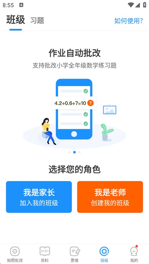 5、点击“班级”功能,根据您的角色创建或加入班级,开启智能作业管理,具体操作如下:
