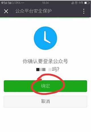 扫码验证通过后,系统会弹出公众平台安全保护提示,点击“确定”完成登录。