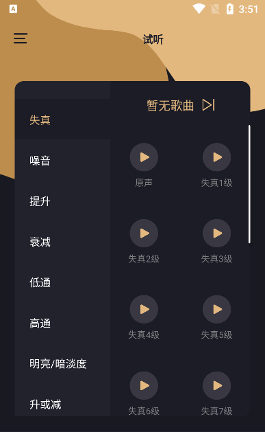 训练 - 涵盖失真、噪声、提升、衰减、升或减、低通、高通、明亮/暗淡度、饱满/单薄度、染色/自然度共10个训练维度,层层递进,全面提升听觉分辨力。