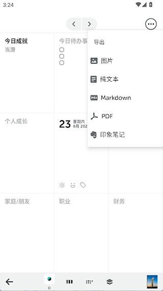 数据导出与备份:支持将日记导出为PDF、Markdown等格式,方便分享、打印或长期存档。