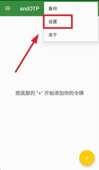 打开andotp,进入主界面后点击右上角的三竖点按钮。