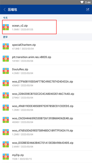 首先在文件列表中选择需要解压的压缩包,点击进入操作界面。
