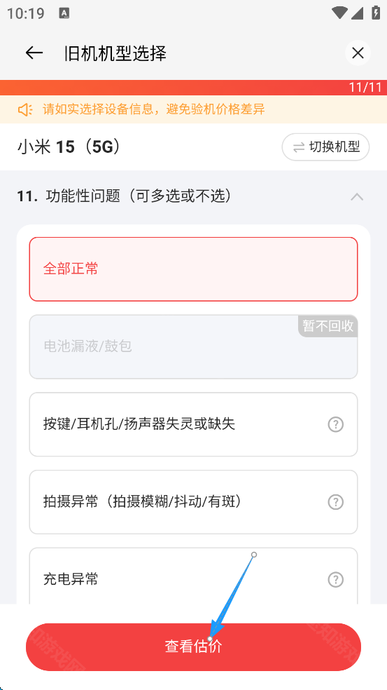6、最后点击屏幕下方的“查看估价”。