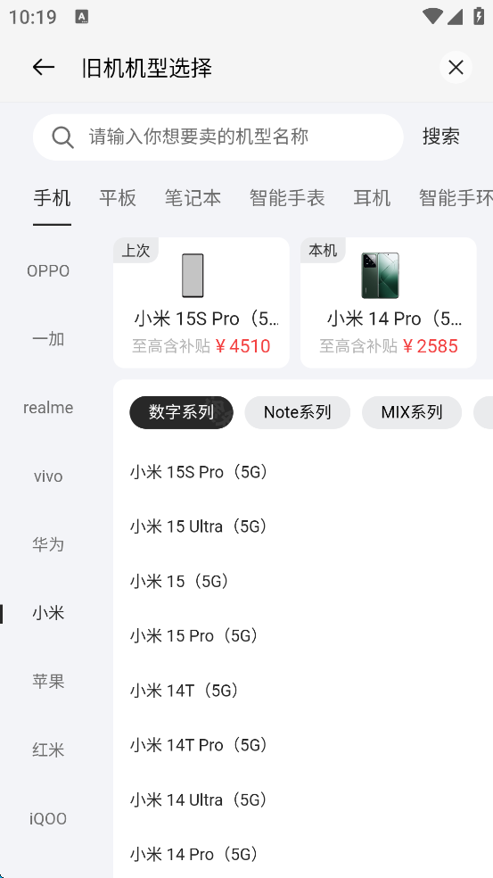 4、找到想好估价的手机机型。