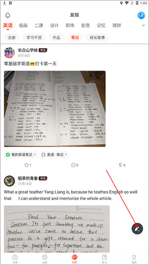 打开网易云课堂App,点击底部导航栏中间的“社区”入口,进入社区主页。