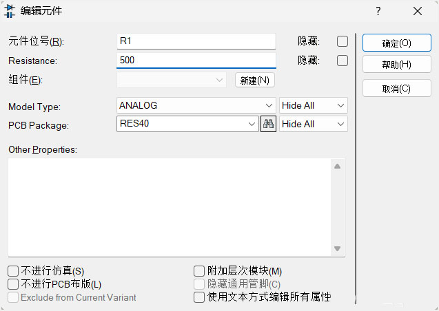 5、如需修改参数,只需双击已放置的元件,即可在弹出窗口中调整其属性