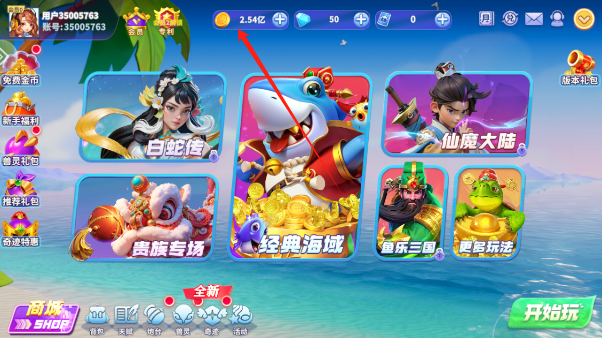 1、这里也给大家看下最突出的特点,我们可以看到上方的金币都是以亿为单位的,小编这还是没玩多久的情况下获取的,让捕鱼玩家用户能够一次玩个够