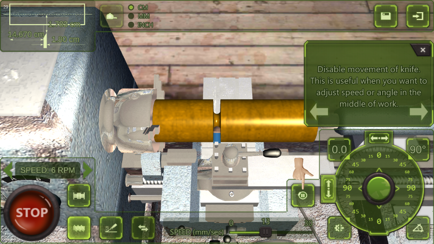 8、当玩家想在工作过程中调整速度或角度时,禁止刀具的移动是很有用的;