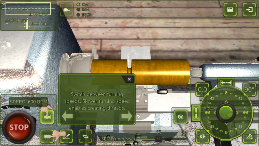 7、在转弯速度之间切换,较慢的车削速度可以创建线程;