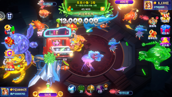 酷炫特效,万倍收益让您一炮亿金发大财!快来感受非一般刺激、爽快的捕鱼体验吧!游戏场景丰富,包括】龟相使者、蟹将叛逃、幽灵船长、人鱼宝藏、龙王降世、海魔猎场等诸多场次,每一个场次都有自己独特的玩法和特殊的奖励。