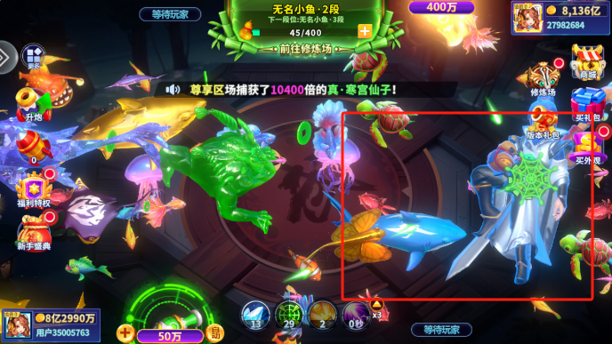 2、渔网道具,开启后将会发射自动跟踪的捕鱼导弹