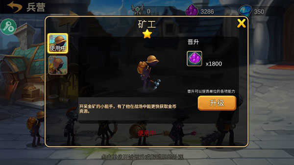 6.矿工:开采金矿的小能手,有了他在战场中能更快的获取金币资源。