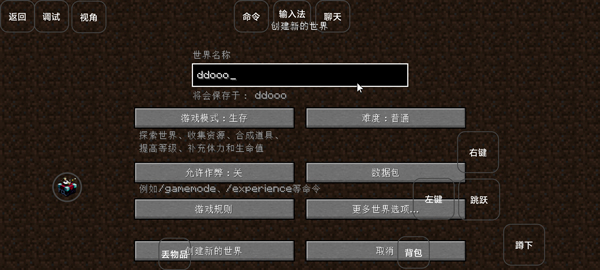 4、调整好后,创建一个世界进入游戏;