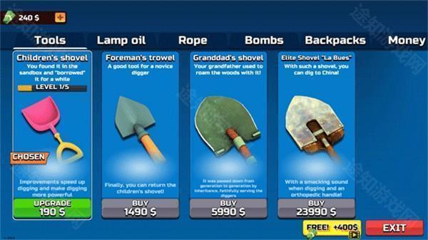 所有挖出的物品均可在商店出售换取金币,这些收益不仅能用于购买更强力的工具,还能解锁辅助道具,为后续探险提供坚实保障。