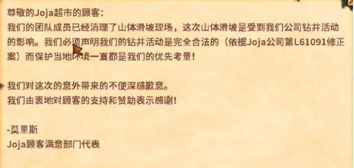1、游戏进行到第五天时,会收到一封信,告知山体滑坡已被清理。