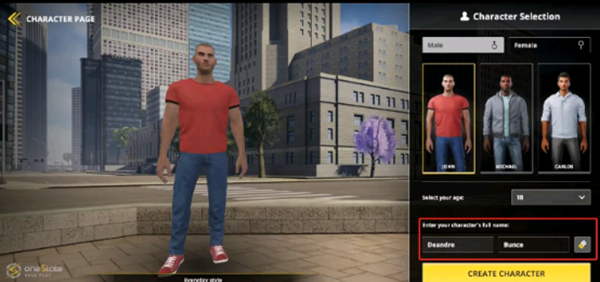 进入游戏后会有一个角色选择界面,可选择男性/女性,在这里修改名字将决定你在游戏中的称呼。