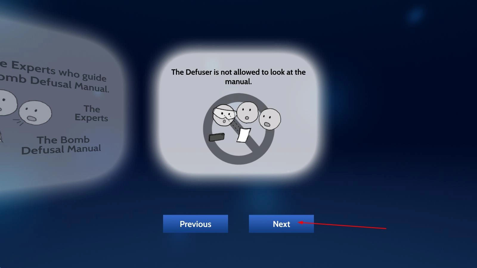 信息协作揭秘:拆弹者需准确描述炸弹特征,专家则依据信息筛选手册中的对应章节。只有通过高效沟通与逻辑推理,双方才能精准定位解法,共同化解危机。