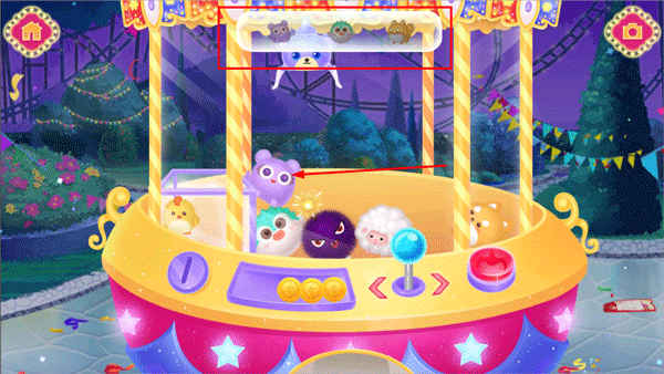 每个主题商店都设有专属关卡,例如在娃娃机区域,和小公主一起按照屏幕上方提示操作夹娃娃。