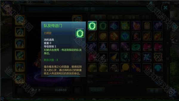 1、点击右下角背包图标打开背包界面,右侧可切换不同编号的背包页签。