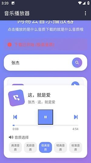 播放页面提供多种音质选项,用户可根据需求选择并下载对应品质的音乐文件。