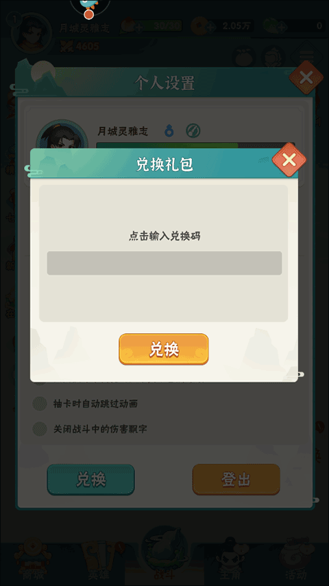 3、此时我们点击兑换键,就能够弹出一个窗口,这个时候就会出现一个兑换码输入框啦,将兑换码福利输入进去进行兑换即可。