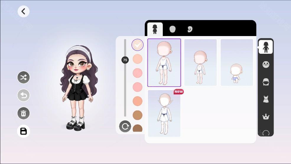 接着,你可以自由搭配发型、服饰、配饰等,打造独一无二的专属角色,别忘了点击保存,让你的创意完整保留。