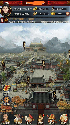 九品小官亦有飞黄腾达之日!完善的官品晋升体系,让你在步步高升中体验封侯拜相的极致快感,手握重权,号令群臣,尽享一人之下、万人之上的尊荣。