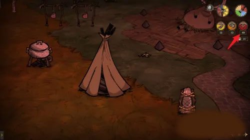 2、在饥荒新家游戏里,玩家晚上最需要干的一件事就是保证自己的照明,因为在饥荒新家游戏里,有玩家持续一段时间失去光线就会被黑夜里的不明生物袭击。而获得照明方式主要的手段是火把,火堆,火坑,矿工帽等。