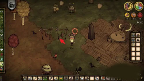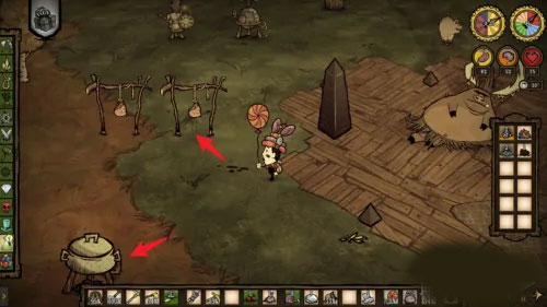 4、将原料放入烹饪锅或挂晾肉架,制作出食物,吃掉大量回血。