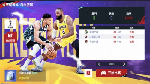2、除了单人挑战内容,游戏还设有在线3v3街球模式,支持玩家邀请好友或匹配全球对手,检验阵容强度与战术水平,并在职业联赛体系中不断进阶,向篮球传奇发起冲击。