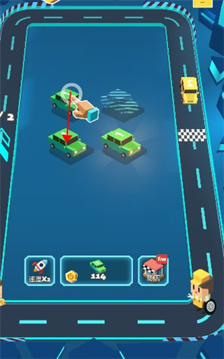 5、然后将新的车辆拖放到赛道中赚取金币。