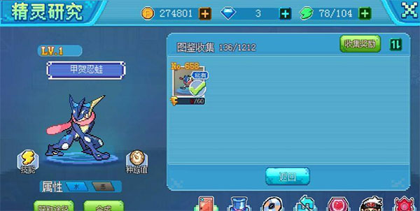 1、进化路径:呱呱泡蛙 → 15级进化为呱头蛙 → 35级进化为甲贺忍蛙。