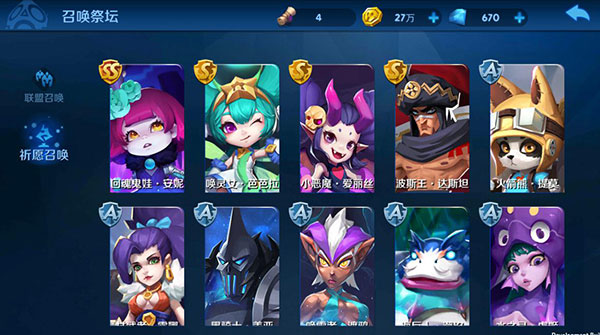 2、联盟召唤消耗金币,可召唤出低级符石,较普通的英雄及英雄碎片。