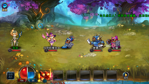 5、进入新手教程后,可手动点击下方技能按钮攻击敌人,也可开启自动战斗功能,轻松上手,快速融入战斗节奏。