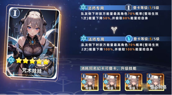 咒术娃娃:队友阵亡时,有70%概率使敌方战力最高角色能量归零,并将全部能量转移至自身。芸芸与太乙均为合适选择——太乙擅长秒杀,芸芸则能在敌人倒下时获取能量,具体搭配可根据阵容需求灵活选择。