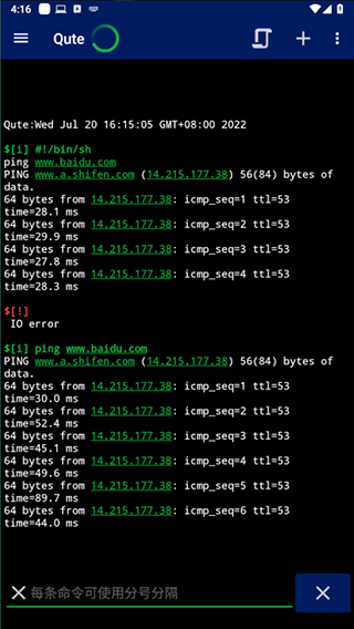 Qute命令行shell是一款安卓终端模拟器,支持在手机上执行Linux命令行操作,可运行ping、netstat、cd、mkdir等常见PC终端命令,快速访问内置Shell,轻松实现移动设备上的命令行体验。